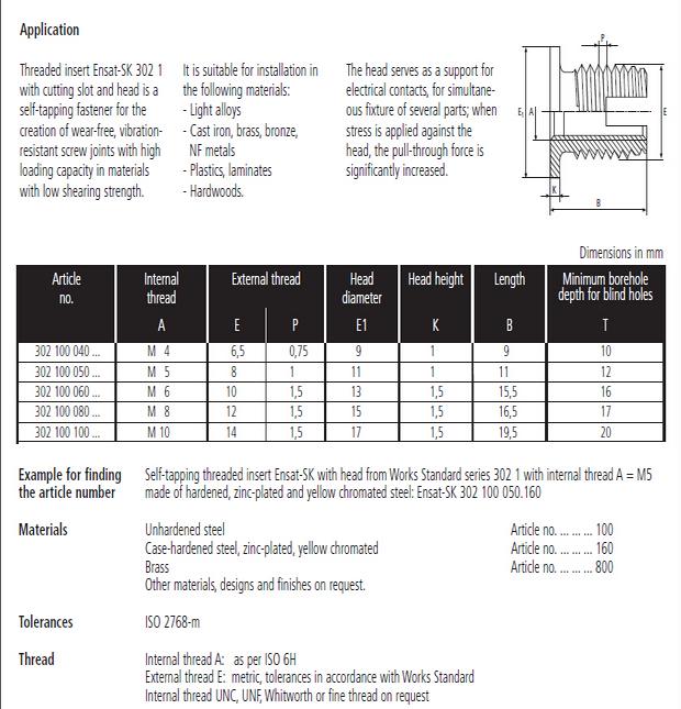 302-1型自攻莆田丝套是一种新型的紧固件,使用后能够加强螺纹强度。产品有内外牙,将其嵌入塑料,铝合金,铸铁,铜等较软材料内,形成的内螺纹孔就可以具有较高的强度。